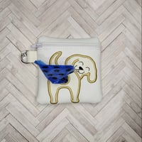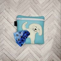 Big enough to hold a roll of bags, or reused ones, and some all important treats or house keys. Measures 11cm x 11xm